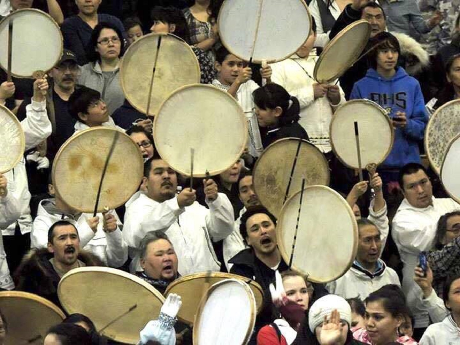 Photograph: Wainwright drummers at Kivgiq in Barrow, 2015, Cordelia Kellie